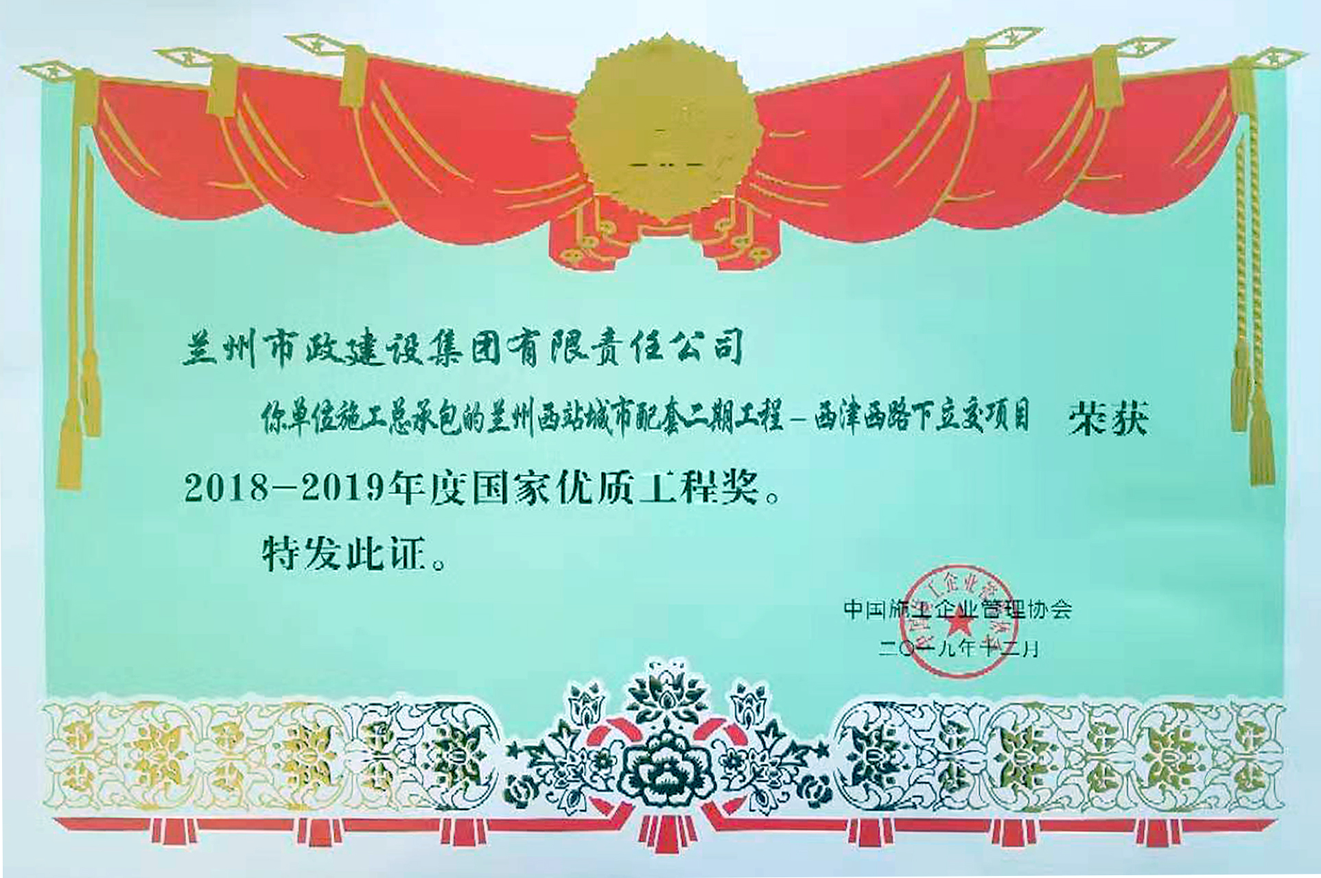 12月8日,2018-2019年度國家優質工程獎總結表彰大會8日在京召開。集團公司承建的蘭州西站城市配套二期工程—西津西路下立交項目獲評國家優質工程獎,會上進行了表彰。