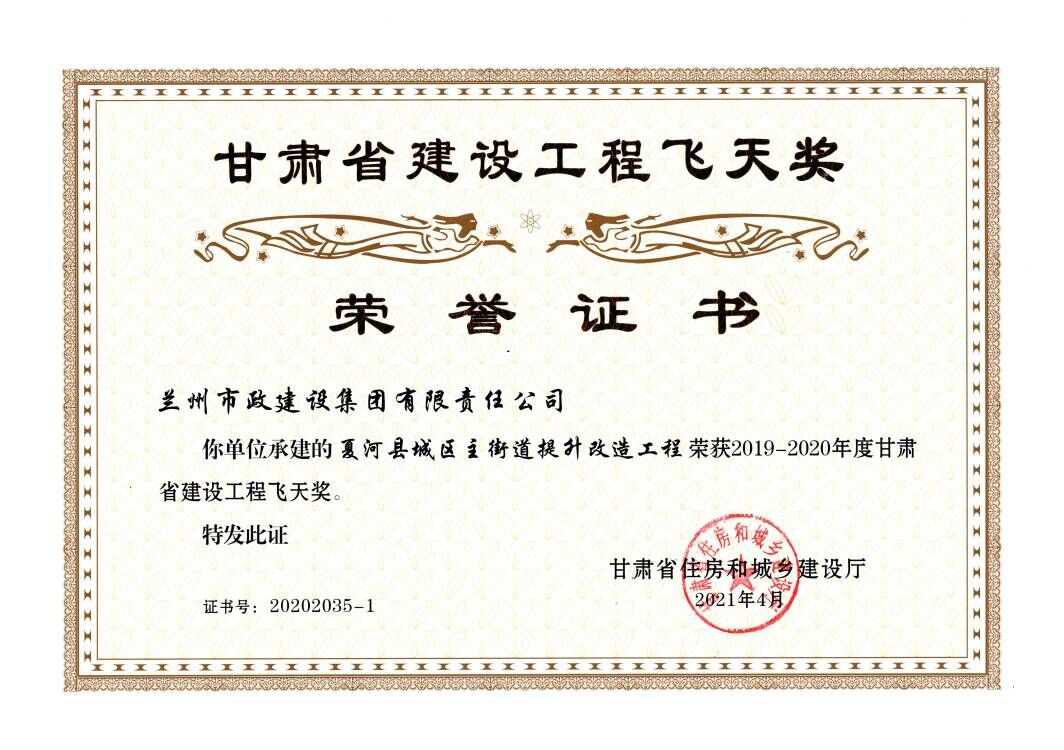 近日,甘肅省住房和城鄉(xiāng)建設(shè)廳發(fā)布2019-2020年度甘肅省建設(shè)工程“飛天獎”評選結(jié)果,由蘭州市政建設(shè)集團承建的夏河縣城區(qū)主街道提升改造工程獲此獎項。甘肅省建設(shè)工程“飛天獎”是全省建設(shè)工程質(zhì)量最高獎項,集團公司近年來已獲得該獎項37項,其中“飛天金獎”6項。