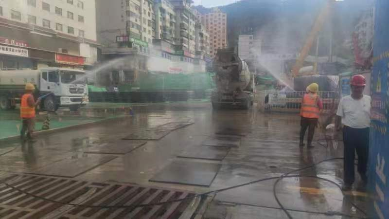 為確保大氣污染防治工作落到實(shí)處,增強(qiáng)項(xiàng)目參建人員大氣污染治理防范意識(shí),保證項(xiàng)目建設(shè)順利進(jìn)行,四公司主要領(lǐng)導(dǎo)靠前指揮,與蘭州市環(huán)保局、城市執(zhí)法局、質(zhì)監(jiān)站等單位溝通協(xié)調(diào),結(jié)合項(xiàng)目地處鬧市區(qū)實(shí)際,制定大氣污染防治措施,并組織項(xiàng)目部全體人員召開大氣污染整治專題會(huì)議,對大氣污染防治工作的相關(guān)要求進(jìn)行部署和落實(shí)。一是全面落實(shí)公司各項(xiàng)決策部署和子(分)公司《關(guān)于進(jìn)一步加強(qiáng)施工大氣污染管理工作的通知》要求,提高思想認(rèn)識(shí),轉(zhuǎn)變工作作風(fēng),落實(shí)工作職責(zé),切實(shí)抓緊抓實(shí)抓好各項(xiàng)措施落實(shí)落細(xì),以實(shí)際舉措防治大氣污染,確保空氣質(zhì)量持續(xù)改善。二是加強(qiáng)宣傳引導(dǎo),發(fā)揮黨建工作引領(lǐng)作用,提高政治站位,緊盯目標(biāo)任務(wù),突出重點(diǎn)工作,堅(jiān)持目標(biāo)導(dǎo)向,劃分責(zé)任區(qū),責(zé)任到人,強(qiáng)化考核問效,為安全文明施工生產(chǎn)提供保障。三是狠抓揚(yáng)塵治理。各參建員工要牢固樹立大局意識(shí),責(zé)任意識(shí)、擔(dān)當(dāng)意識(shí),嚴(yán)格落實(shí)“六個(gè)百分百”要求,齊抓共管,加強(qiáng)施工現(xiàn)場、道路揚(yáng)塵管控,督促各施工作業(yè)隊(duì)文明施工,嚴(yán)格落實(shí)各項(xiàng)防塵抑塵降塵措施,促進(jìn)項(xiàng)目建設(shè)順利推進(jìn)。四是加大揚(yáng)塵污染治理物資設(shè)備的投入。項(xiàng)目部在施工周邊居民樓上安裝噴淋系統(tǒng)噴霧降塵,施工現(xiàn)場發(fā)泡機(jī)噴水抑制塵土飛揚(yáng),有效減少揚(yáng)塵污染。施工場區(qū)道路、加工區(qū)地面進(jìn)行硬化處理,裸露場地進(jìn)行全覆蓋,鉆孔泥漿自然脫水固化后及時(shí)使用封閉式運(yùn)輸車輛外運(yùn)。車輛出入口安裝車輛自動(dòng)沖洗裝置,專人負(fù)責(zé),檢查車輛外部、底盤、輪胎處不得沾有污物和泥土,嚴(yán)禁車輛帶泥上路。五是加大巡查和預(yù)防力度。項(xiàng)目部安排專人加強(qiáng)對揚(yáng)塵污染源的巡查和檢測,不定時(shí)進(jìn)行場地清潔、灑水,及時(shí)處理揚(yáng)塵污染問題。