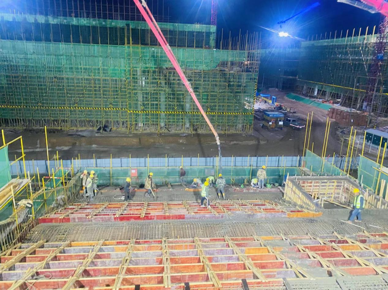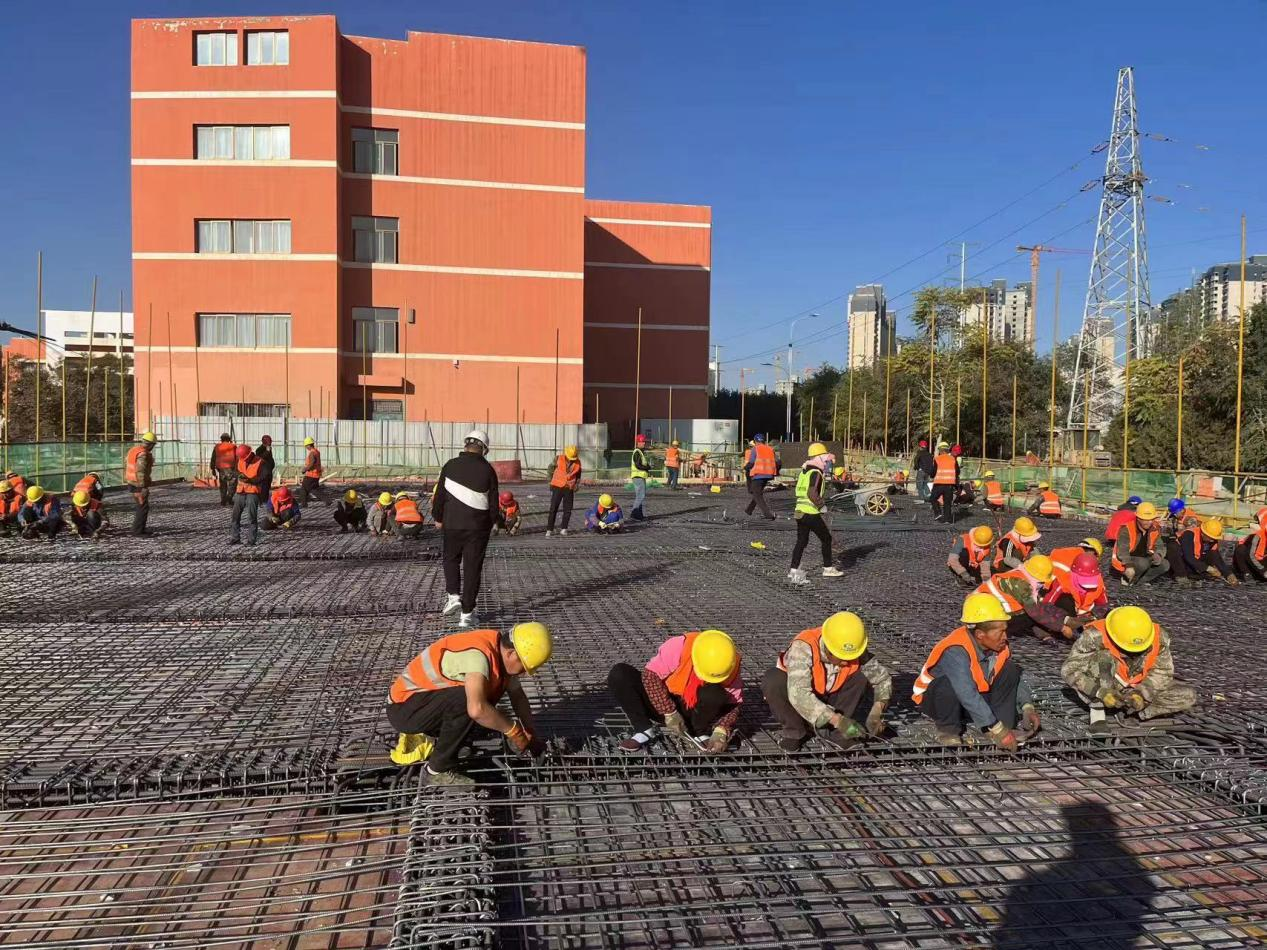 涼州區職業中等專業學校5號實訓樓建設項目總面積9059.2平方米,計劃周期12個月,2024年7月交付使用。項目建設初期,由于施工場地內高壓電塔遷改進程緩慢,導致新建項目開工較晚。為確保5號實訓樓建設項目按期完工,項目部提前籌劃、科學安排,倒排工期,現場管理人員及施工人員加班加點,趕進度,把前期耽誤的時間搶回來。截至目前,5號實訓樓建設項目已在一個月內完成基礎與主體混凝土澆筑2800m3,構造底板及剪力墻SBS防水卷材2500m2,使用鋼筋原材580噸,從構造底板到主體三層結構的施工任務,為建設項目按期交付打下了堅實基礎。