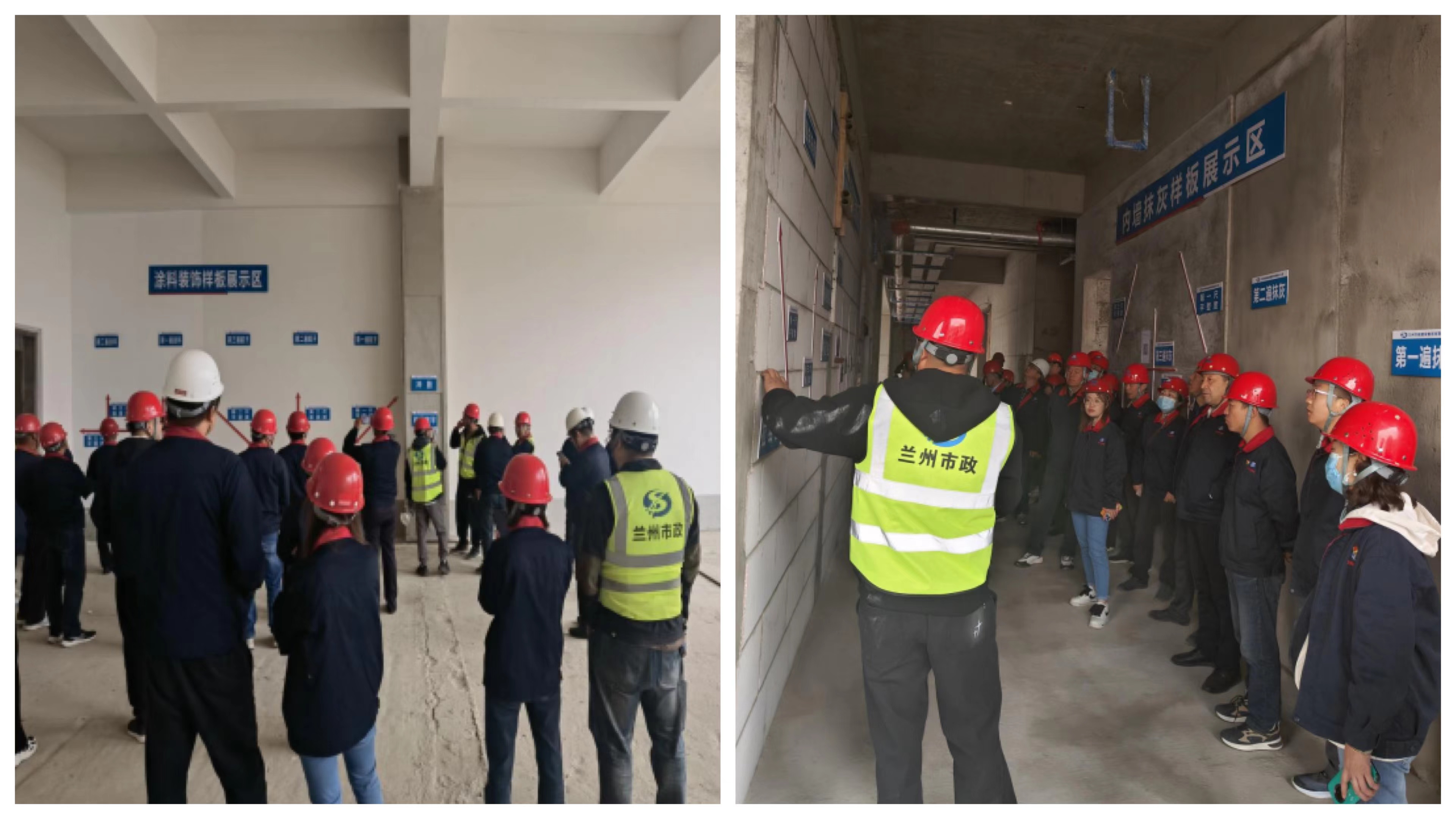 觀摩人員一行深入項目主體施工點,認真聽取了項目建設的詳細情況介紹。首先來到高層教學樓砌體工程樣板間、內墻抹灰工程樣板間、安裝部分的消防管道及箱體安裝工程樣板間、安全樣板展示樓層樣板間進行了觀摩。隨后進入3#多層教學樓對墻面膩子涂料施工工程樣板間進行了觀摩。最后對二棟樓的砌體工程、內墻抹灰工程、屋面保溫及找坡層、找平層施工工程、玻璃采光頂安裝工程、衛生間防水工程、墻面膩子涂料施工工程、外墻抹灰施工工程、屋面防水施工工程,安裝部分的消防管道及箱體安裝工程,給水、污水、雨水、暖氣管道安裝工程,排煙風管安裝工程,橋架及配電箱安裝工程、排煙風管防火保溫施工工程等單項工程進行了逐一觀摩學習,大家邊走邊聽邊議,共同交流探討了項目安全質量、技術、文明施工、標準化管理等方面的好做法、好經驗。