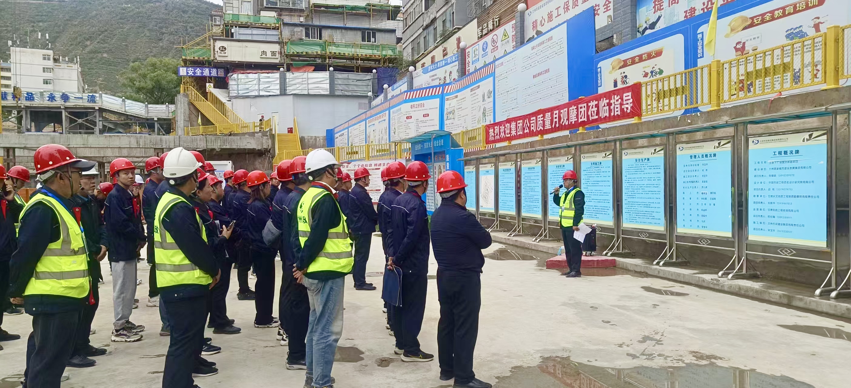 觀摩人員一行深入項目主體施工點,認真聆聽了項目建設的詳細情況介紹,觀摩學習該項目咬合樁、抗浮錨桿、基坑防水層、筏板基礎、格構柱、型鋼柱、鋼筋混凝土內外墻等安全、質量、技術、文明施工、標準化管理等方面的好做法、好經驗。