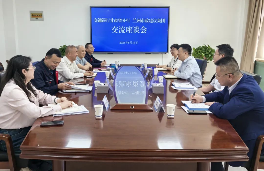 5月13日下午,交通銀行甘肅省分行副行長魯小松一行到訪蘭州市政建設(shè)集團(tuán),與蘭州市政建設(shè)集團(tuán)黨委副書記、總經(jīng)理王守武及相關(guān)人員進(jìn)行座談,雙方就進(jìn)一步深化合作進(jìn)行了深入交流。交通銀行甘肅省分行授信審批部副總韓瀟、五泉支行行長郭琳、五泉支行副行長李國偉,蘭州市政建設(shè)集團(tuán)黨委副書記、紀(jì)委書記、工會主席王集權(quán),副總經(jīng)理韓耀德及相關(guān)部門負(fù)責(zé)人參加座談。